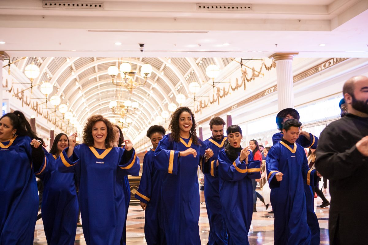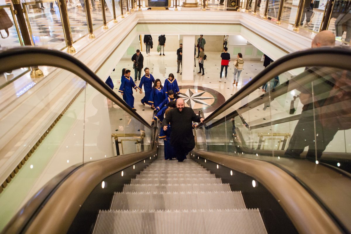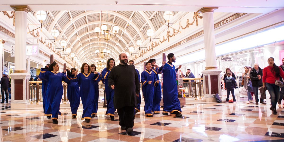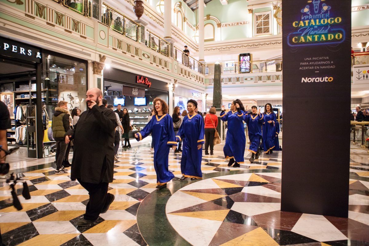 Para daros a conocer este catálogo cantado elegimos el Centro Comercial Plaza Norte 2 en San Sebastián de los Reyes (Madrid), ¡dónde estaba todo preparado para recibir a nuestro coro de gospel!